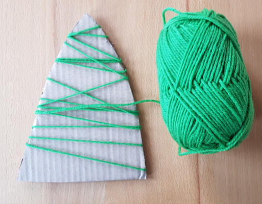 Then wrap the wool around the cardboard and glue on the pompoms. Done!