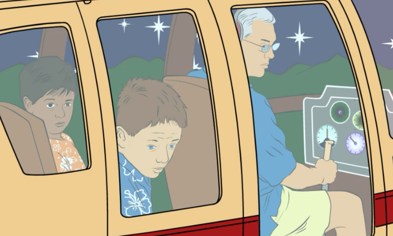 Malu and Darren could hardly contain their excitement. It was their very first flight in a helicopter. They flew over waterfalls and volcanoes.