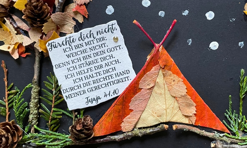 Find a nice spot for your Bible verse – perhaps in the middle of the tent or between the trees?