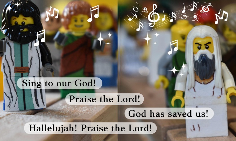 To mark the inauguration of the wall, two large choirs march and organise a procession at the top of the finished city wall. One choir moves to the right, the other to the left.