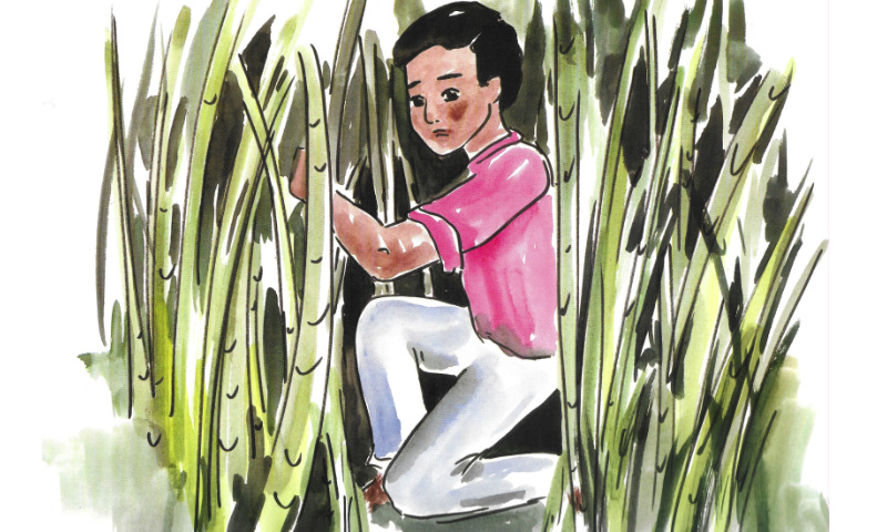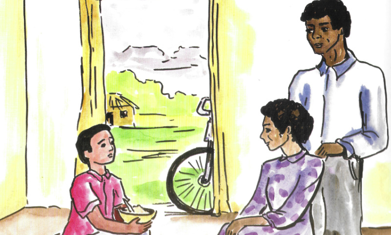 Raju hides in the sugar cane field as quickly as he can. In the evening, he dares to go home. His father punishes him severely. He is no longer allowed to have any contact with Samuela, the missionary or the church.