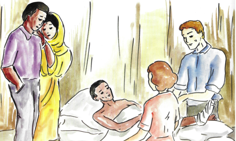 Only now Raju noticed the missionary and his wife. They had come to clean and re-bandage his wounds. Before leaving, they prayed with Raju.