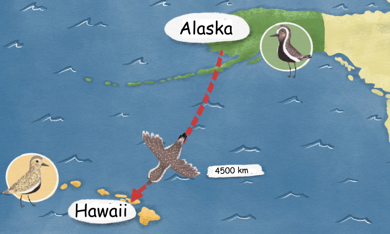 The American golden piper weighs a total of 0,7 pounds and burns up 0,6% of his body weight every hour he flies.